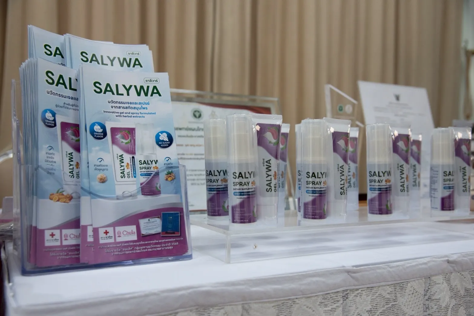 สภากาชาดไทย โดยโรงพยาบาลจุฬาลงกรณ์ ร่วมกับ คณะแพทยศาสตร์ จุฬาลงกรณ์มหาวิทยาลัย และ บริษัท สเปเชียลตี้ อินโนเวชั่น จำกัด เปิดตัว “SALYWA” (ซาลีวาร์) ผลิตภัณฑ์น้ำลายเทียมจากสารสกัดขิงไทย ผลงานวิจัยของ รศ.พญ.คนึงนิจ กิ่งเพชร และคณะ เพื่อช่วยบรรเทาภาวะน้ำลายน้อยหรือปากแห้ง (Dry Mouth)